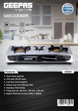 اجاق گاز سه شعله رومیزی جیپاس GK6857 (فندک سر خود)