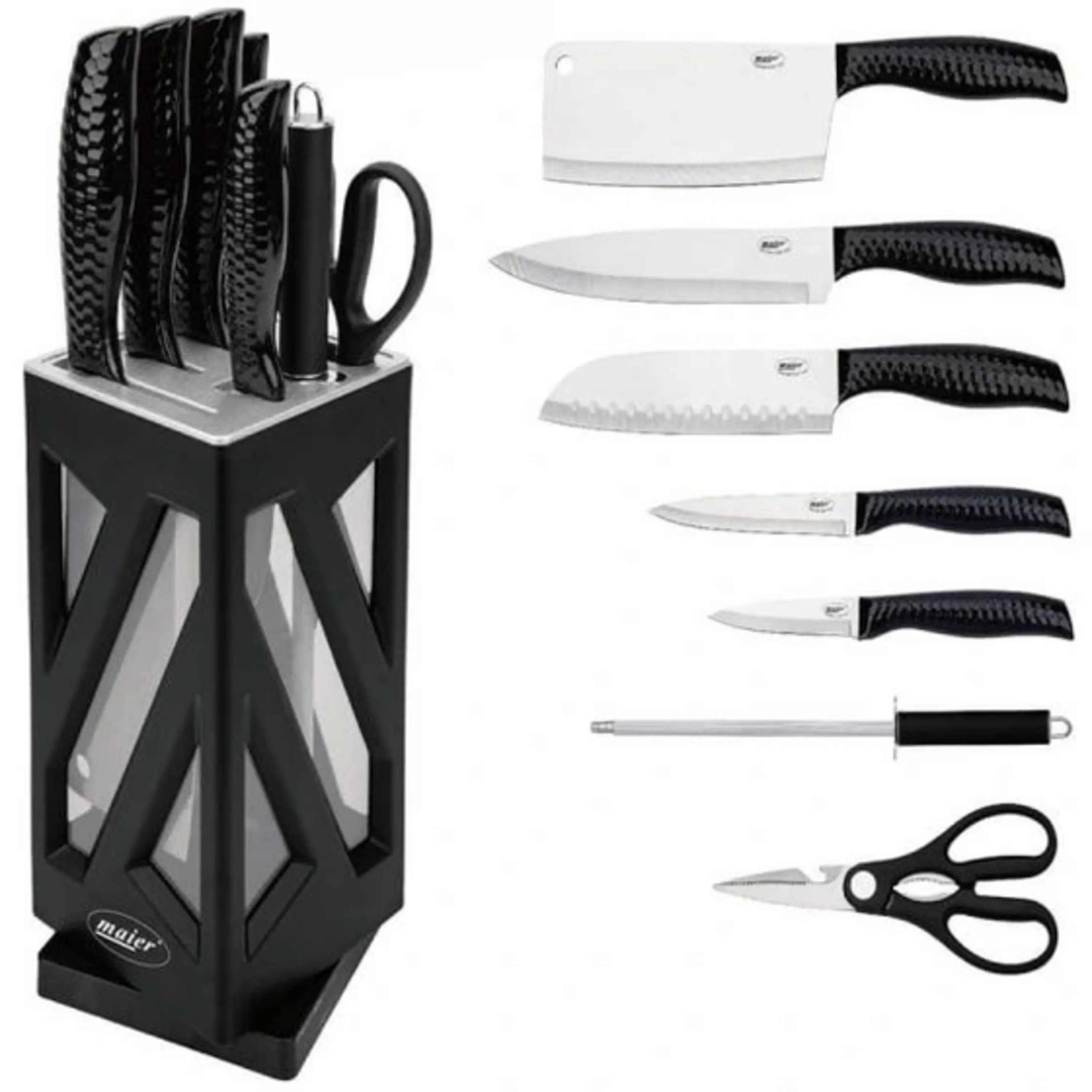 اگر به دنبال داشتن چاقوهای بسیار برنده هستید و از کند شدن گاه و بیگاه چاقو های خود خسته شدهاید ما برای شما پیشنهاد جالبی داریم. ست چاقوی آشپزخانه 8 تکه کارد مایر مدل MR-74 یکی از محصولات تولید شده و با کیفیت توسط شرکت «مایر المان » بوده و برای استفاده در کارهای پوست کندن و برش و…کارایی بسیار دارد. این مدل تیغههای آن از جنس استیل ضدزنگ با روکشسرامیک است. این ست چاقو به صورت 8 پارچه بوده.