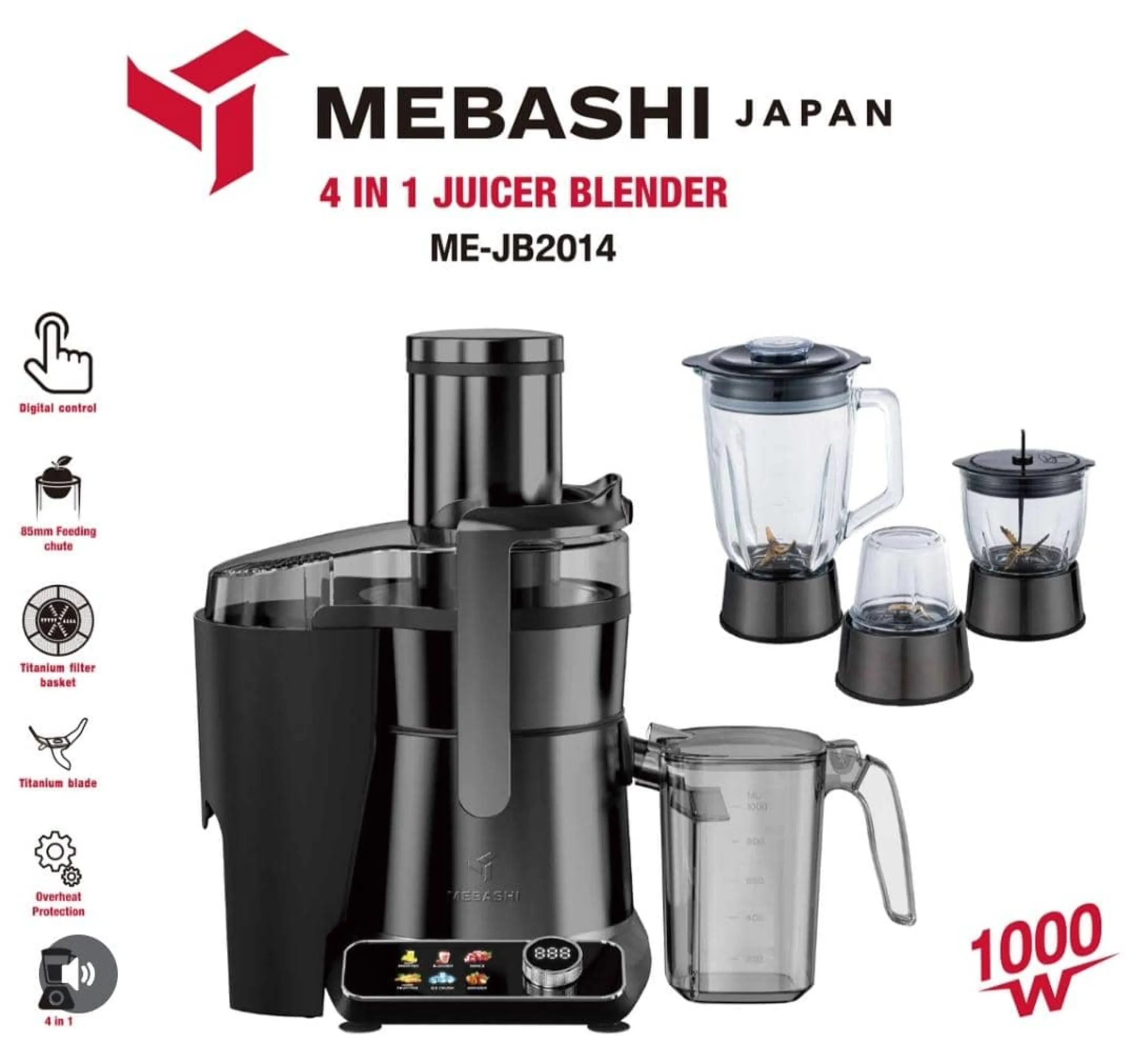 آبمیوه گیری چهار کاره مباشی ژاپن مدل ME-JB2014 MEBASHI با قابلیتهای متنوع خود، میتواند در تهیه انواع آبمیوههای تازه و سالم به شما کمک کند. این دستگاه علاوه بر آبمیوهگیری، قابلیت خرد کردن، مخلوط کردن و آسیاب کردن مواد غذایی را نیز داراست. بنابراین، میتوانید از آن برای تهیه انواع اسموتیها، سسها و حتی آسیاب کردن دانههای قهوه استفاده کنید. طراحی چند منظوره این دستگاه، آن را به یک ابزار کارآمد در آشپزخانه تبدیل کرده است که میتواند نیازهای مختلف شما را برآورده کند.