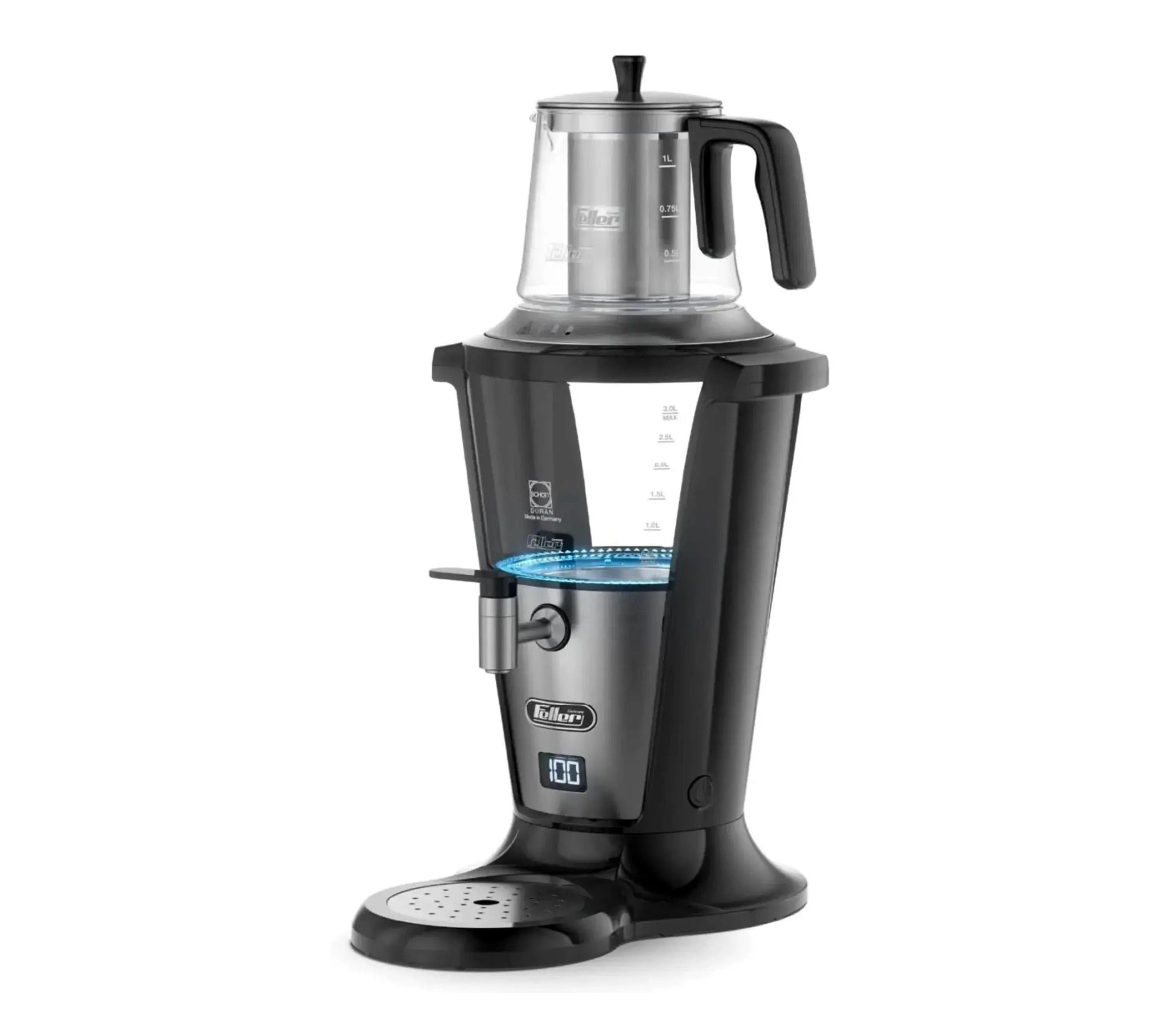 معرفیتفاوت با مدل 380: فقط بر روی بدنه 390 یک نشانگر درجه آب داردقدرت: 2000 واتگنجایش سماور: 3 لیترگنجایش قوری: یک لیترجنس قوری: پیرکس شات آلمانجنس سماور: شیشه شات آلمانسیستم قطع خودکار: داردسیستم گرم نگهدارنده آب: دارد