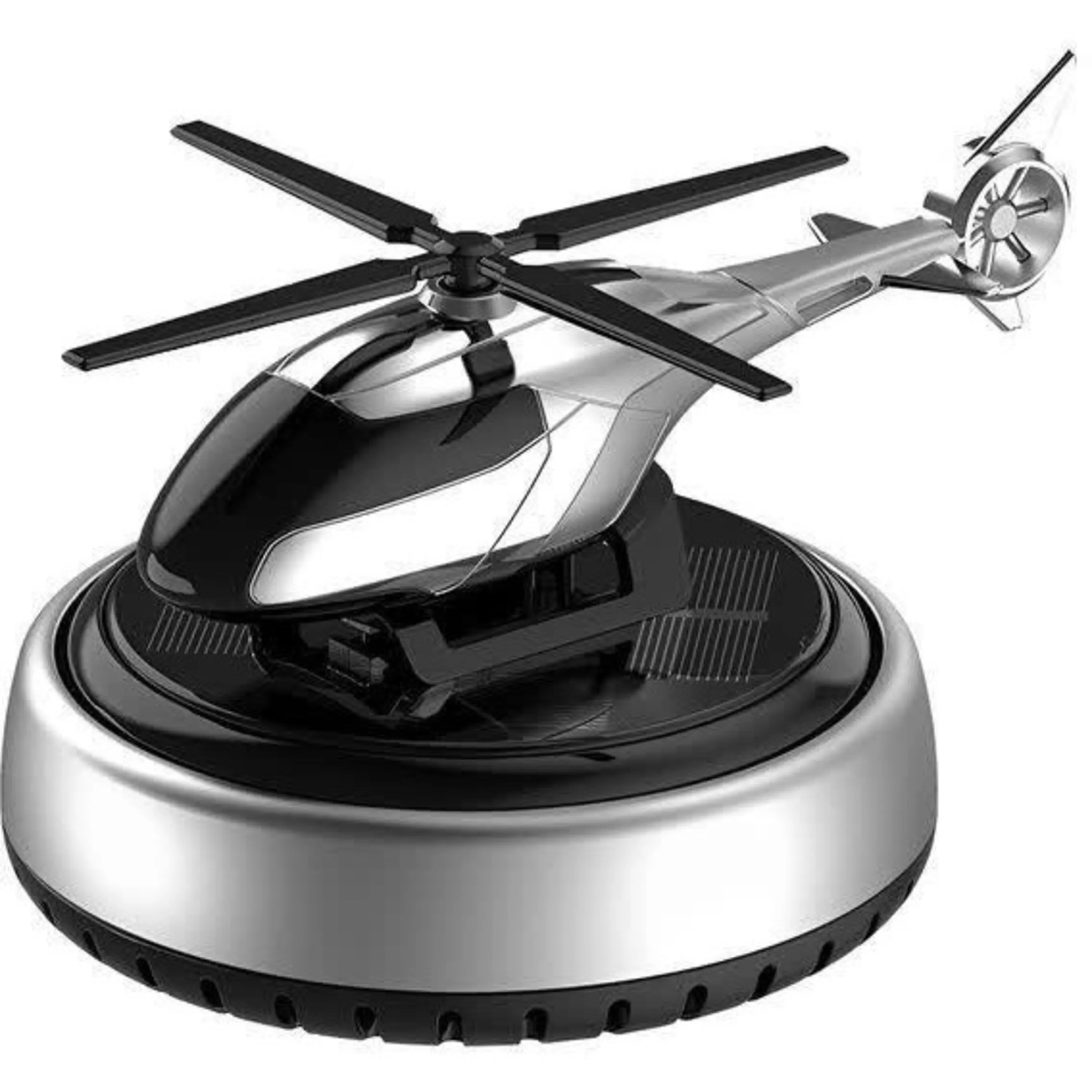خوشبو کننده هلیکوپتری مدل خورشیدی می باشد که بدون نیاز به باطری با نور خورشید پره های هلیکوپتر شروع به چرخیدن می کند و این محصول را میتوان روی داشبورد یا هر سطح صافی چسباند و این محصول دارای اسانس قطره ای خوشبو ادکلنی و قوی است که با اتمام اسانس می توان با هر اسانس که خودتون علاقه داشتید شارژ کنید. این محصول هم خوشبو کننده است هم تزیینی که زیبایی خاصی به خودرو شما می دهد.
